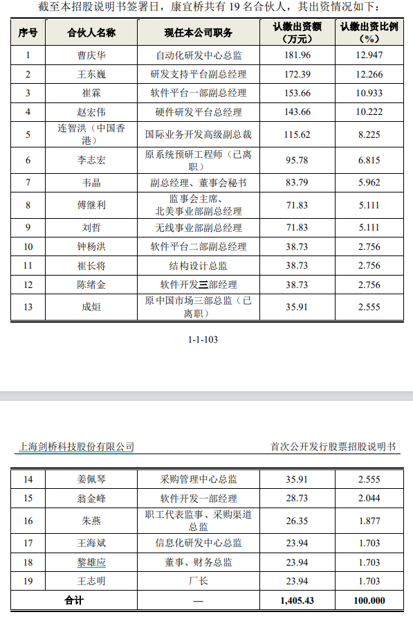 瑞财经《预审IPO》查阅后发现,康宜桥其实是剑桥科技的员工持股平台之一,于2011年10月由剑桥科技的几名国内员工合伙成立。