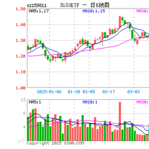 5G50ETF(159811)涨1.69%,半日成交额72.34万元