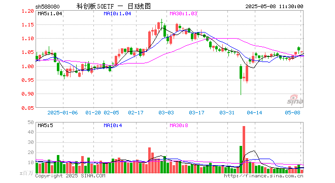 5月8日,截止午间收盘,科创板50ETF(588080)跌0.38%,报1.051元,成交额3.15亿元。科创板50ETF(588080)重仓股方面,中芯国际截止午盘跌0.83%,海光信息跌2.48%,寒武纪跌1.81%,澜起科技跌1.01%,中微公司涨0.17%,金山办公跌0.06%,联影医疗跌0.94%,传音控股涨2.45%,芯原股份涨0.78%,石头科技涨2.25%。