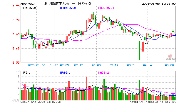 5月8日,截止午间收盘,科创50ETF龙头(588060)跌0.30%,报0.654元,成交额7906.51万元。科创50ETF龙头(588060)重仓股方面,中芯国际截止午盘跌0.83%,海光信息跌2.48%,寒武纪跌1.81%,澜起科技跌1.01%,中微公司涨0.17%,金山办公跌0.06%,联影医疗跌0.94%,传音控股涨2.45%,芯原股份涨0.78%,石头科技涨2.25%。