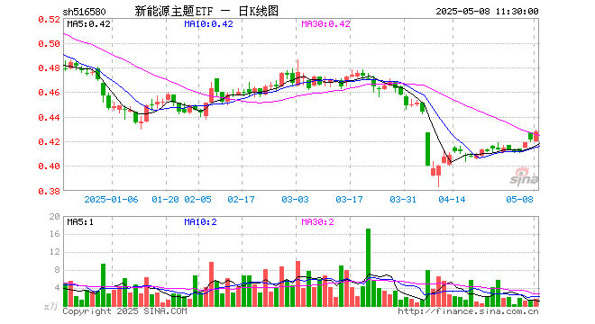新能源主题ETF(516580)涨1.66%,半日成交额64.78万元