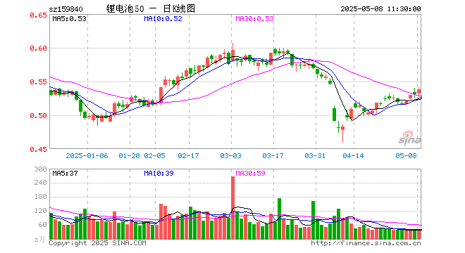 锂电池ETF(159840)涨1.32%,半日成交额1905.05万元