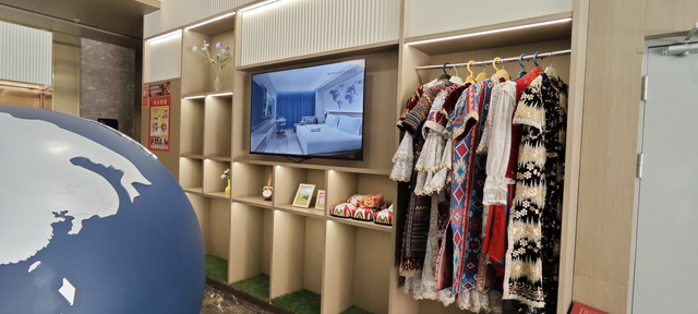 位于西北的凯里亚德酒店(喀什古城景区店)打造“丝路风情体验”,免费提供艾德莱斯绸连衣裙、维吾尔族刺绣马甲等民族服饰;同时赠送古城打卡地图,标注最佳摄影机位(如百年茶馆、空中花园),游客还能在大堂品味“润燥银耳羹”,红枣枸杞配方完美适配干燥气候。大堂特设礼品专区,各式民族特色针织包、桌旗、围巾、古丽娃娃及骆驼玩偶等方便住客随时挑选。
