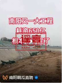 “南阳又一工程耗资650亿”?官方回应