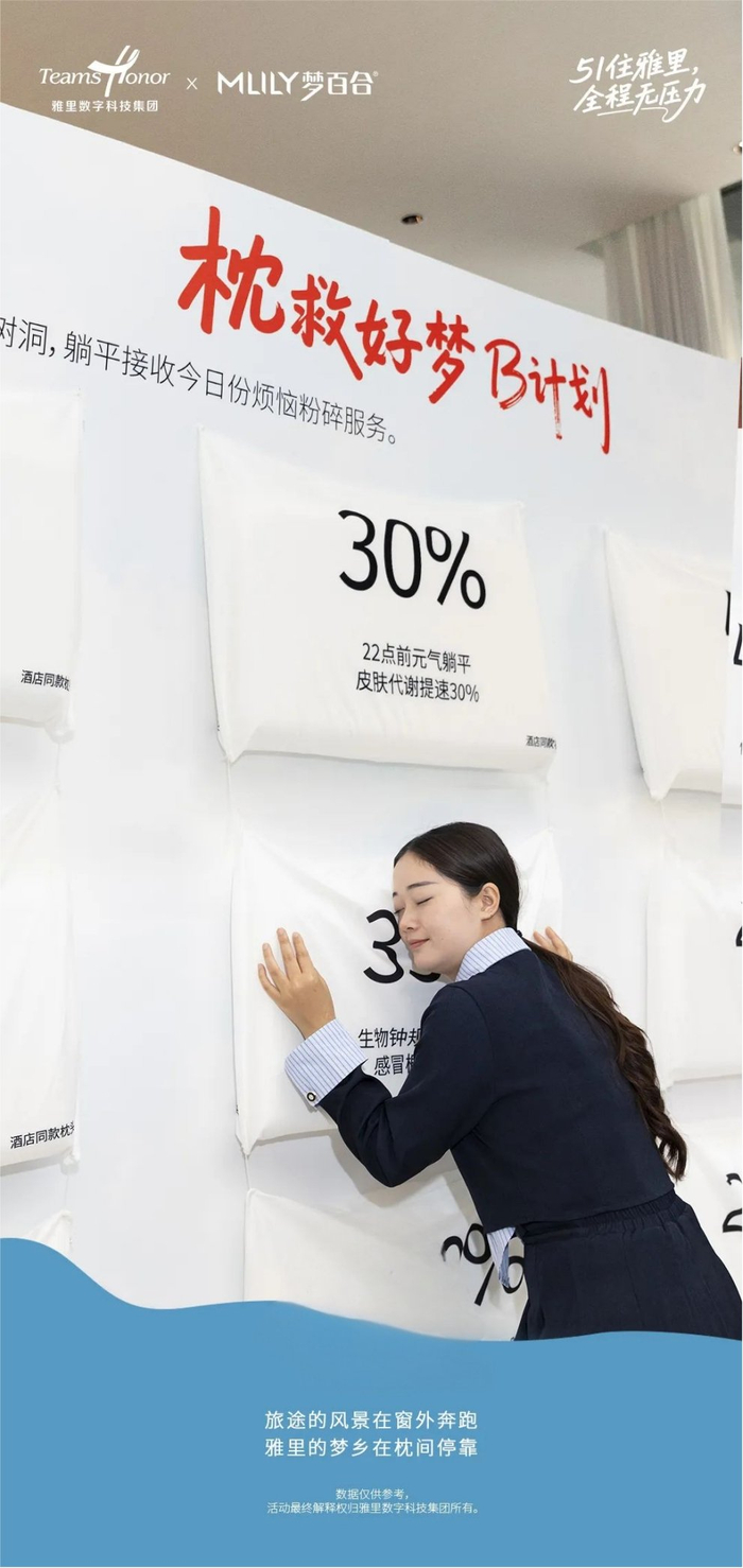 针对假期游客普遍关注的睡眠质量痛点,雅里数科联合梦百合推出“枕救好梦B计划”,主打“到雅里深睡8小时”概念。数据调研显示,活动期间入住宾客平均睡眠时长增加1.2小时,深睡比例提升30%。