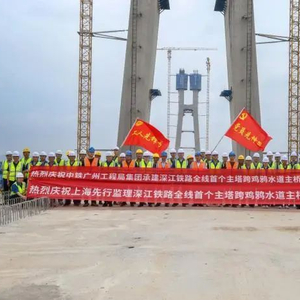 记者昨日从中铁广州工程局集团获悉,由该集团承建的深江高铁跨鸡鸦水道主桥首个主塔日前正式封顶。这是深江高铁全线首个封顶的桥梁主塔,标志着桥梁主体结构进入钢梁架设阶段。