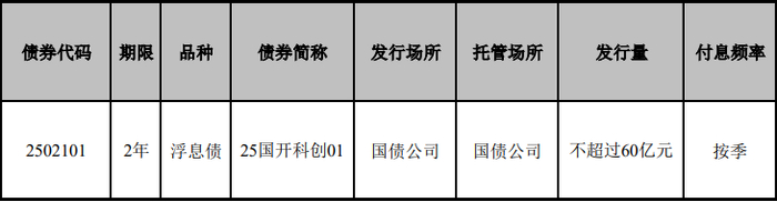 国家开发银行2025年第一期贴现科技创新债券为182天贴现债券,发行量不超过40亿元,发行所筹资金将用于支持科创企业日常经营周转。