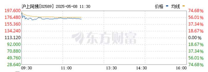 港股沪上阿姨今日在港交所挂牌上市,开盘大涨逾68%,截至发稿,该股涨51%。