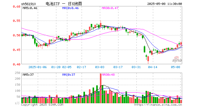 电池ETF(561910)涨1.50%,半日成交额1108.96万元
