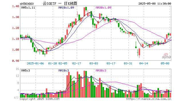 5月8日,截止午间收盘,云50ETF(560660)涨1.41%,报1.147元,成交额280.15万元。云50ETF(560660)重仓股方面,中科曙光截止午盘跌0.08%,中际旭创涨8.60%,新易盛涨10.10%,金山办公跌0.06%,紫光股份涨0.66%,浪潮信息涨0.89%,恒生电子涨0.11%,润和软件跌0.64%,润泽科技涨0.25%,用友网络涨0.48%。