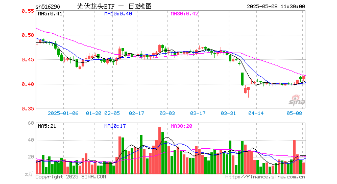 5月8日,截止午间收盘,光伏龙头ETF(516290)涨1.47%,报0.415元,成交额542.69万元。光伏龙头ETF(516290)重仓股方面,隆基绿能截止午盘涨1.46%,阳光电源涨2.85%,TCL科技涨0.47%,特变电工涨0.26%,通威股份涨1.08%,TCL中环涨1.55%,晶科能源涨2.14%,正泰电器涨1.29%,德业股份涨1.92%,晶澳科技涨2.33%。