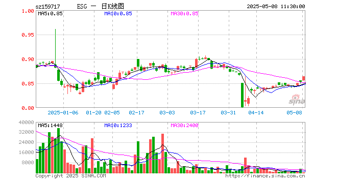 5月8日,截止午间收盘,ESG300ETF(159717)涨1.29%,报0.864元,成交额1.47万元。ESG300ETF(159717)重仓股方面,贵州茅台截止午盘涨2.00%,宁德时代涨3.88%,招商银行涨3.12%,中国平安涨1.93%,美的集团涨1.60%,兴业银行涨2.85%,长江电力涨0.10%,比亚迪涨0.44%,东方财富涨0.24%,紫金矿业跌0.28%。
