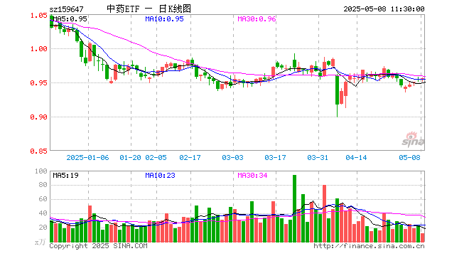 中药ETF(159647)涨0.10%,半日成交额1084.00万元