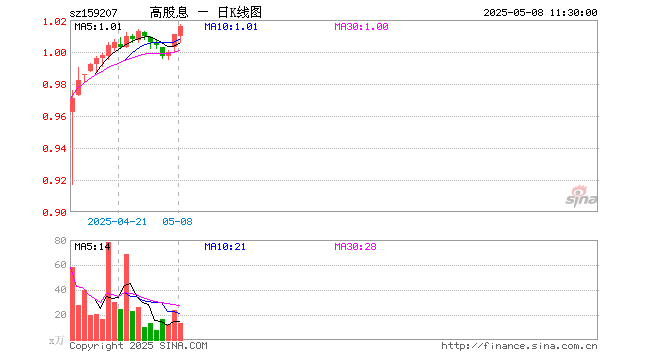 高股息ETF(159207)涨0.49%,半日成交额1366.72万元