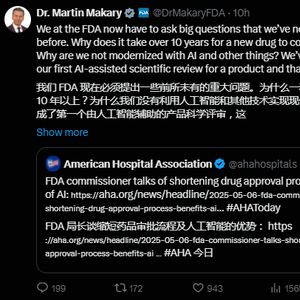 与此同时,周三,FDA专员Marty Makary在X平台发文质问: