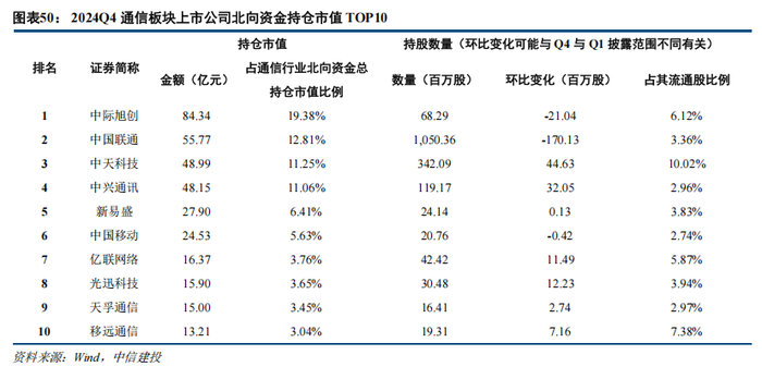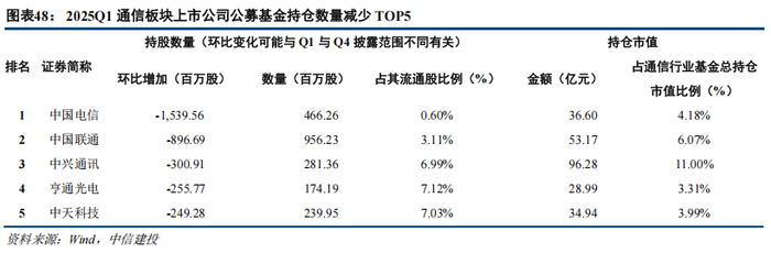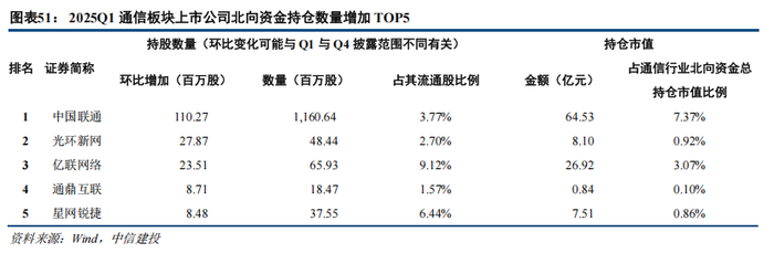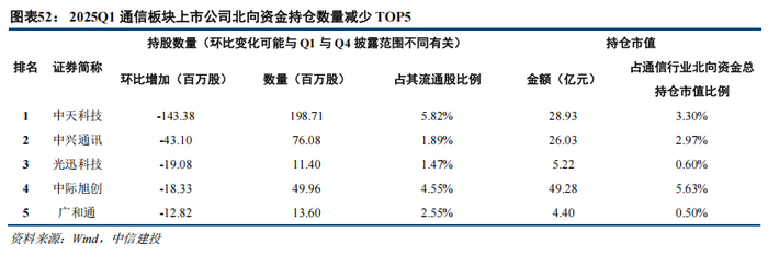 4.1 2025Q1通信行业公募、北上持仓占比有所下降