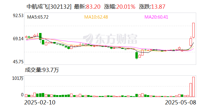 大飞机概念攻势再起 中航成飞20CM涨停 上海 2025.05.0814:10 关注 上证报中国证券网讯 5月8日,大飞机概念攻势再起,截至14时00分,中航成飞20CM涨停,晨曦航空涨近15%,中航沈飞、中无人机等跟涨。