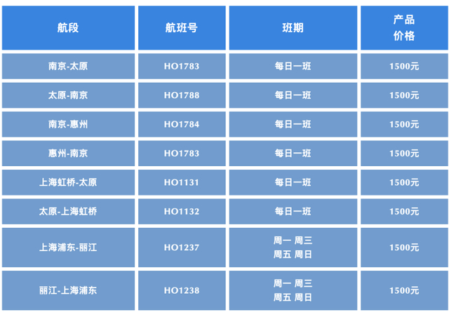 这个五一刚刚开通该服务的两家,东航是上海-青岛航线,吉祥航空则是针对上海浦东-丽江、上海虹桥-太原、南京-太原、南京-惠州的往返航线。