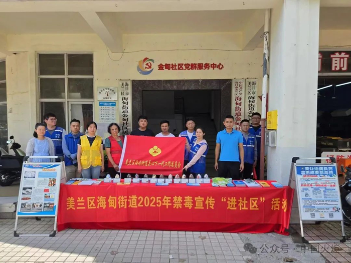 5月6日,美兰区海甸街道关工委联合海甸司法所、街道海岸线驿站、综治办等部门在金甸社区开展“防范药物滥用 警惕新型毒品”禁毒宣传“进社区”活动。