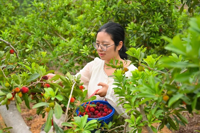 在何灵飞看来,这些杨梅不仅仅是美味水果,更是她和当地村民们的增收致富“红果果”。果园杨梅除了供游客采摘,也通过线上订单发往南宁、钦州、北海等地。五月中旬是当地杨梅上市高峰期,为确保订单及时送货,让买家吃上最新鲜的杨梅,何灵飞每天都需要聘请不少周边的村民帮忙摘果。