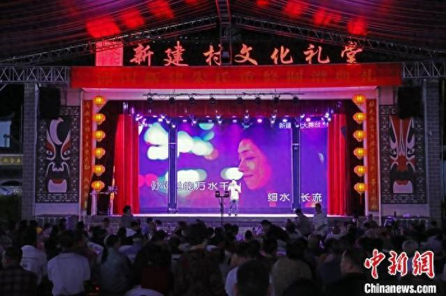 5月7日晚,浙江缙云新建村,村民们观看“村麦”比赛。近年来,为丰富民众文化生活,新建村搭建“村麦”大舞台,以比赛选拔的形式,每日吸引缙云各地民众上台演唱,成为当地促进精神共富的一张“金名片”。中新社记者 周健 摄