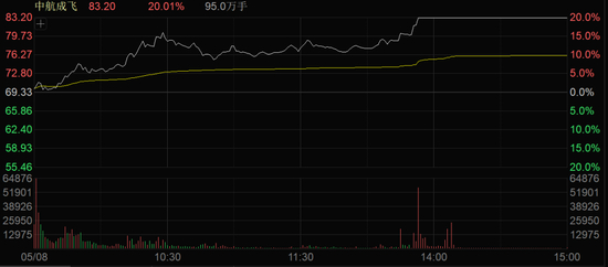 无人机、航空装备、大飞机、军工信息化等板块同样放量上扬,金通灵、成飞集成、晨曦航空、沃尔核材等批量涨停。