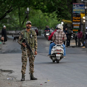 4月22日,安全人员在印控克什米尔地区帕哈尔加姆镇附近警戒。新华社/法新