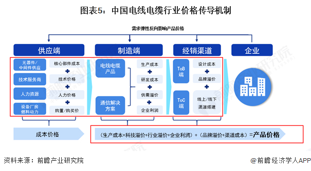 2、电线电缆行业价格由供应端、制造端和经销渠道的增值溢价及消费需求弹性共同作用而成