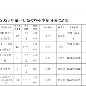 首批高校毕业生见习岗位清单