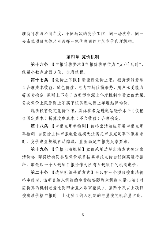 增量新能源项目(2025年6月1日起投产),由省发展改革委会同有关单位明确机制电量规模、执行期限,通过价格竞争方式确定机制电价水平。2025 年竞价申报充足率不低于125%,机制电价原则上按入选项目最高报价确定(不高于竞价上限)支持分布式光伏企业委托代理商参与竞价工作,初期分布式光伏代理商应参考售电公司相应资质。