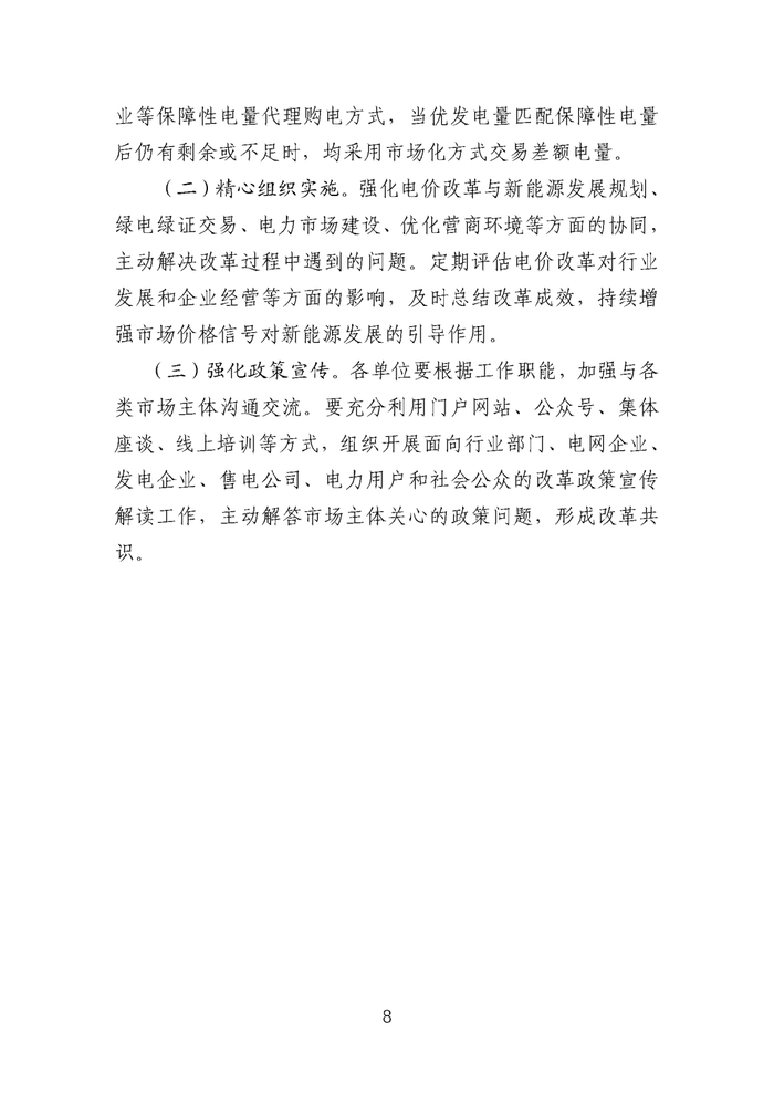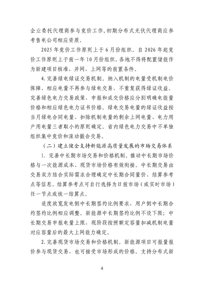 方案明确:2025年底前实现风电、太阳能等新能源全面参与电力市场交易。2025年竞价工作原则上于6月份组织。各地不得将配置储能作为新建项目核准、并网、上网等的前置条件。