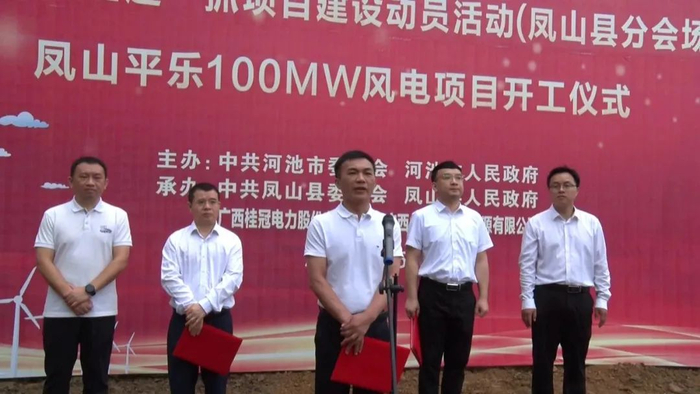 「风电之音」获悉,5月6日,广西壮族自治区河池市凤山县平乐风电场项目在中亭乡举行开工仪式,县委副书记、县长班华任参加活动并宣布项目开工,副县长莫江鸿主持活动。