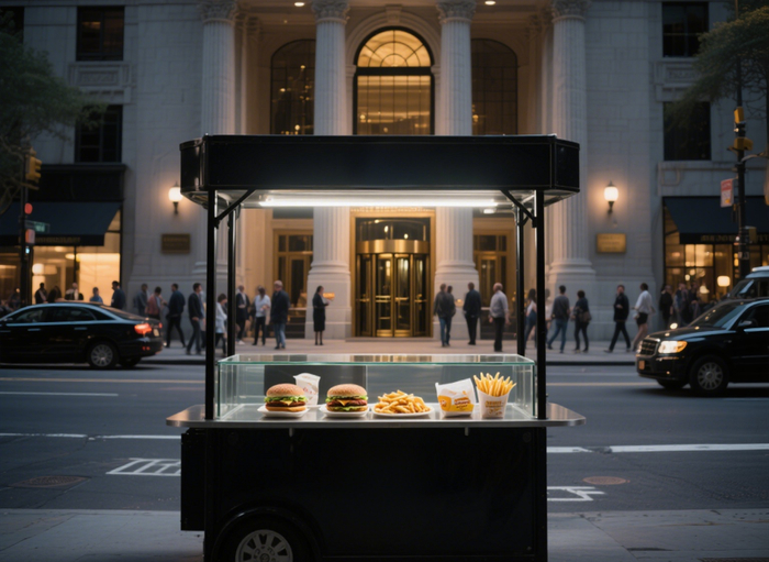 在大众传统印象里,五星级酒店往往是奢华与精致的代名词,大理石地面、水晶吊灯、身着考究制服的侍应生,提供着价格不菲的餐食,人们很难把它们与街边快餐联系在一起。