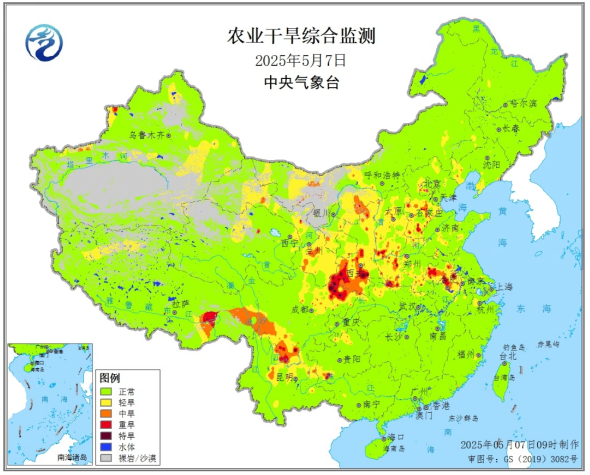 截至目前,海南、华南、江南早稻分别处于乳熟、分蘖及返青期;西南地区一季稻大部分处于三叶期,东北、长江中下游一季稻处于播种育秧阶段;春玉米处于播种出苗至三叶期;春小麦处于播种出苗至分蘖期;甘肃马铃薯处于播种出苗期,西南地区大部分马铃薯处于分枝期;花生处于播种出苗期;新疆、黄淮、江汉地区棉花处于播种至出苗期。