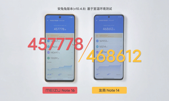 据介绍,魅族Note16标准版将搭载紫光展锐T8200 Flyme 特调满血版,看官方发的对比视频,竞品是红米Note 14,星纪魅族集团中国区总经理肖波称(对比红米Note 14)跑分虽少1.1万分,但“刷信息流、应用冷启动对比红米Note 14更快更跟手。”