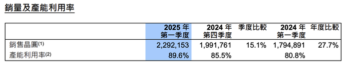 月产能方面,今年一季度折合8英寸标准逻辑增至97.325万片,环比提升约2.56万片;一季度折合8英寸销售晶圆量约为229万片,环比增长15.1%;产能利用率为89.6%,环比提升4.1个百分点。