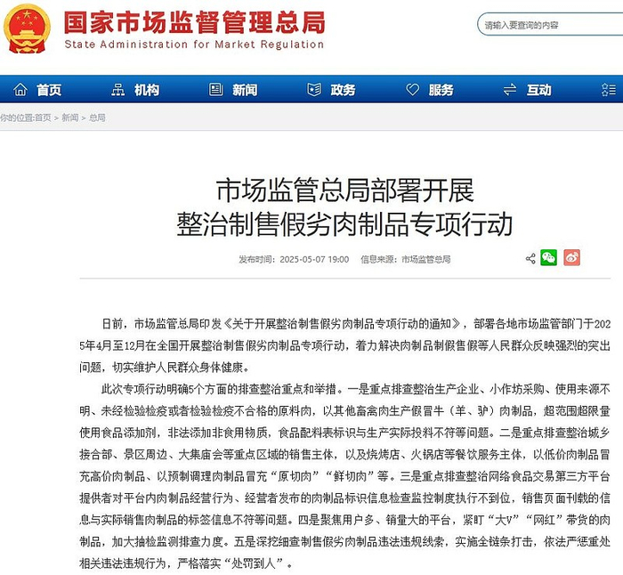 严打假肉市监总局紧盯网红带货全力保障食品安全