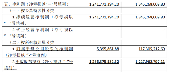 净利润12.42亿元,同比下降7.7%;归母净利润539.59万元,同比下降了95.4%。