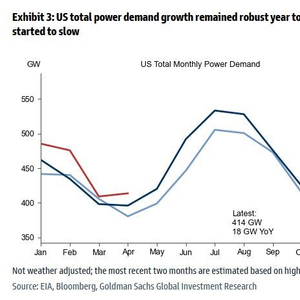 高盛公布的一份报告显示,截至今年目前为止,美国电力需求同比增长了5.5%,远高于过去十年0.6%的年均增长率。Zerohedge分析称,这可能说明当前美国GDP增速可能已达到3%甚至更高。