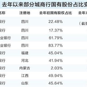 据证券时报记者统计,去年以来,通过国资股东参与增资扩股或受让股权等形式,已有至少9家城商行国有股份占比突破50%。