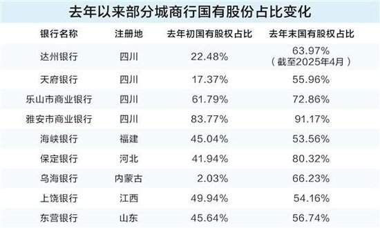 据证券时报记者统计,除达州银行、四川天府银行外,去年以来,至少还有7家城商行的国有股份占比成功突破50%。