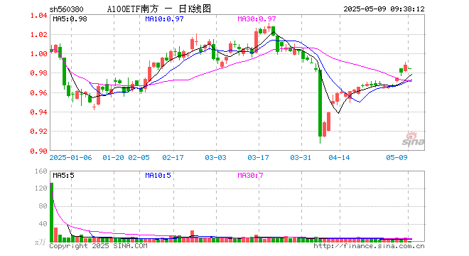 5月9日,A100ETF南方(560380)开盘跌0.40%,报0.984元。A100ETF南方(560380)重仓股方面,贵州茅台开盘涨0.05%,宁德时代涨0.61%,中国平安跌0.10%,招商银行涨0.00%,美的集团跌0.01%,长江电力跌0.03%,比亚迪涨0.41%,兴业银行跌0.05%,紫金矿业跌0.45%,中信证券跌0.23%。