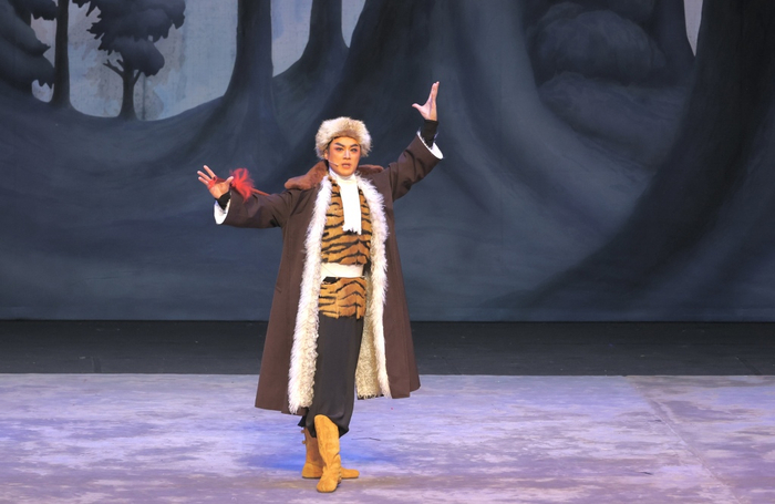 当晚的演出,蓝天一登场,台下就爆发了热烈的掌声。在剧中,蓝天展现了他文武兼备的表演功底和精湛技艺。剧中多个唱段家喻户晓,而蓝天的演唱每每都收放自如,酣畅淋漓,“穿林海跨雪原气冲霄汉”“今日痛饮庆功酒”等多段演唱,台下观众掌声、叫好声此起彼伏,剧场气氛无比热烈。
