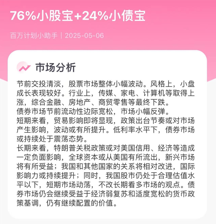 📢「百万计划」本周投资比例:76%小股宝+24%小债宝