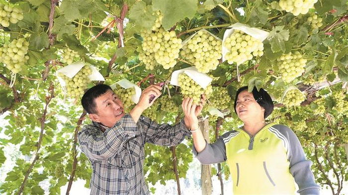 品种改良与设施升级双轮驱动,为六十二团插上了腾飞的翅膀。 该团针对林果品种不优、技术不新等问题,以资金奖补机制为助力,对老旧果园改造、新品种示范、新技术推广等方面给予资金奖励,大力推广苹果主干结果栽培技术、“厂”字型葡萄高标准园建设,推广种植葡萄新优品种妮娜皇后、深红无籽等7种1200余亩,不断实现果品更新升级。