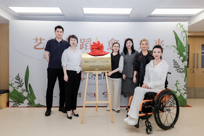 活动中,张军茹、李馨、王欣、北京金羽翼残障儿童艺术康复服务中心主任余兆雍、刘岩以及Nicole Rinehart教授一同上台,为“舞蹈疗愈教学实践基地”揭牌。未来,“舞蹈疗愈教学实践基地”将成为探索艺术疗愈的试验田,各方将依托这一平台,开展课程研发、师资培训、实践推广以及国际交流,共同推动舞蹈疗愈事业的发展。