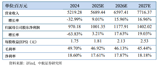 我们预计公司2025-2027年的营业收入分别为56.89亿元、65.97亿元和77.16亿元,归母净利润分别为10.01亿元、11.78亿元和14.02亿元,EPS分别为1.81元、2.13元和2.53元,我们维持“买入”评级,目标价63元,对应2025-2027年预测EPS的35倍、30倍及25倍PE。