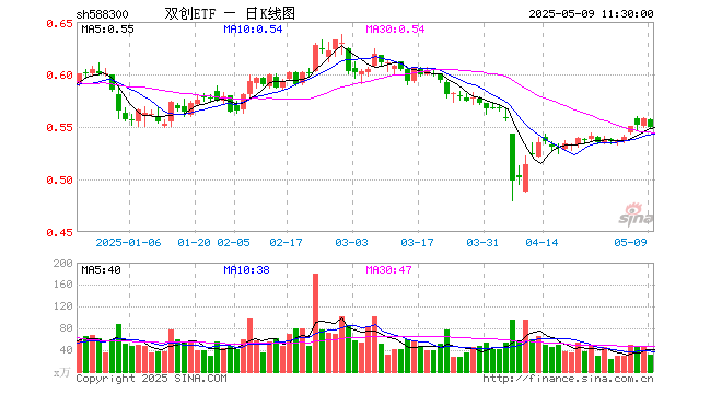双创ETF(588300)跌1.61%,半日成交额1675.83万元