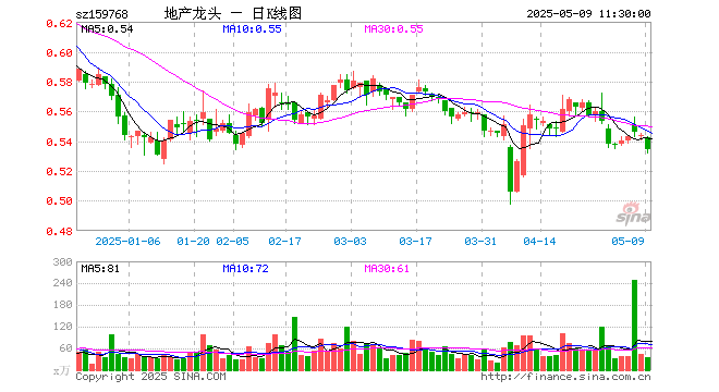 5月9日,截止午间收盘,房地产ETF(159768)跌1.84%,报0.534元,成交额1835.55万元。房地产ETF(159768)重仓股方面,保利发展截止午盘跌1.66%,万科A跌1.31%,招商蛇口跌1.63%,海南机场跌0.84%,张江高科跌2.49%,衢州发展跌2.58%,滨江集团跌3.40%,华发股份跌0.97%,新城控股跌2.06%,上海临港跌0.77%。