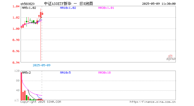 中证A50ETF新华(560820)跌0.19%,半日成交额143.28万元